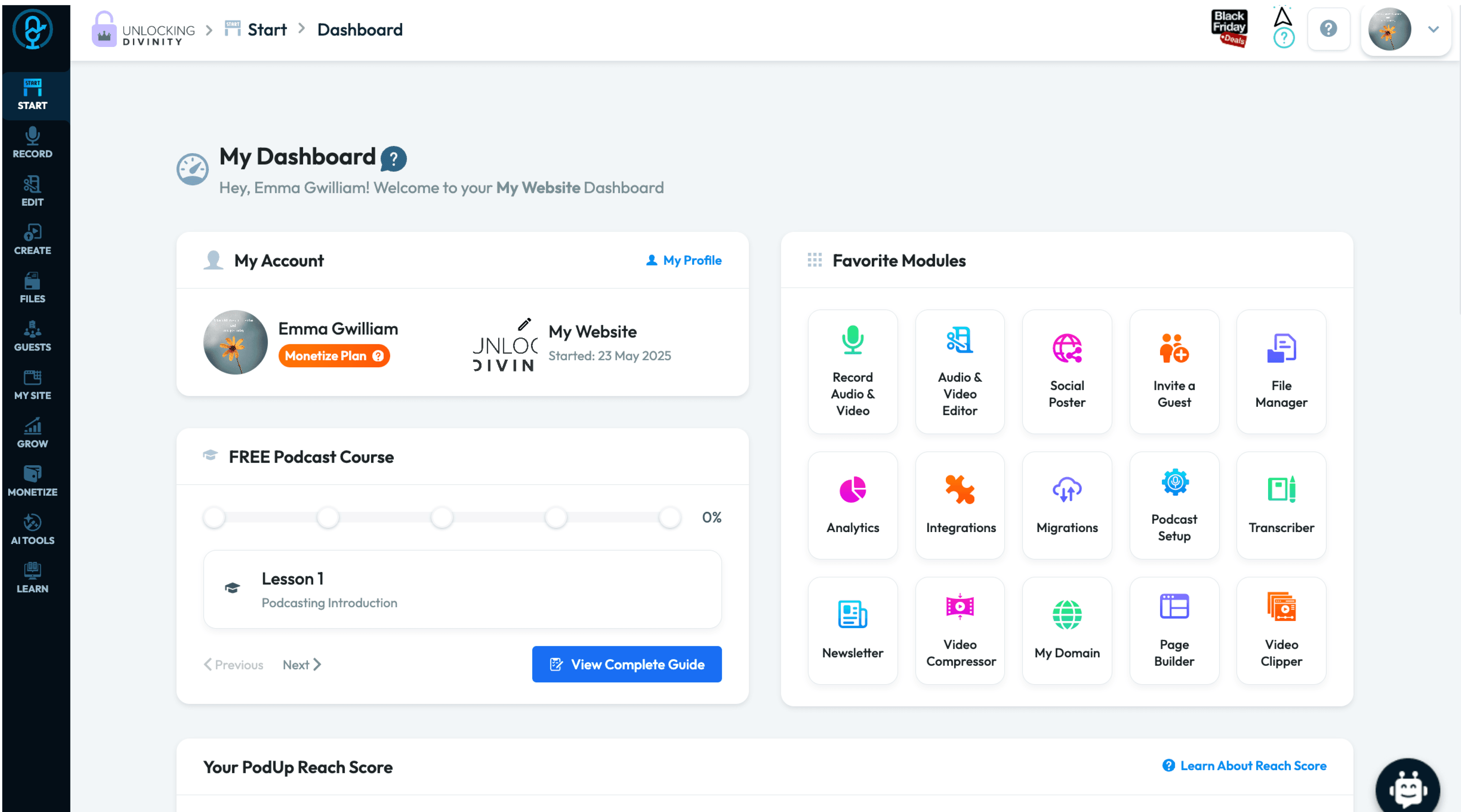 Designed a 22-lesson course to teach users how to launch a complete podcast in 30 days, including social media integration and website creation.